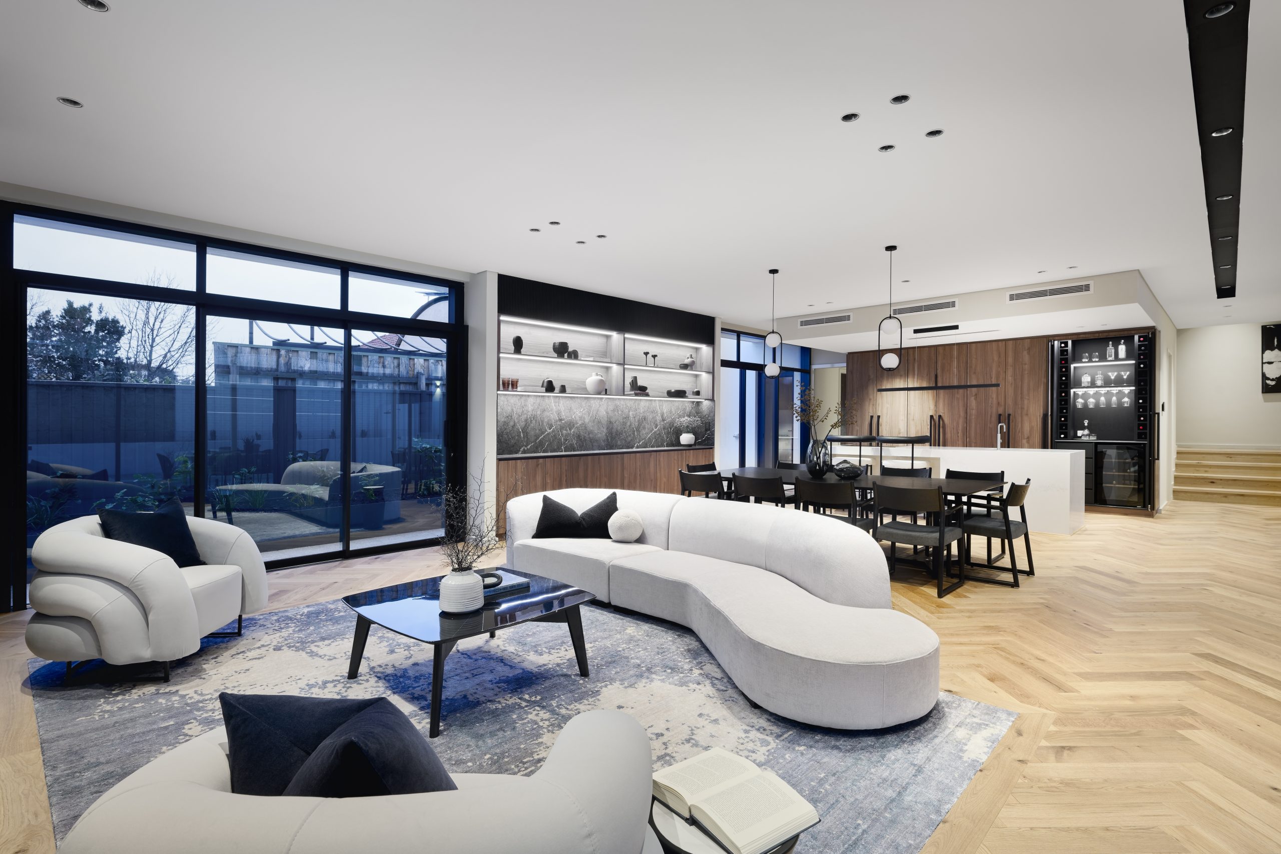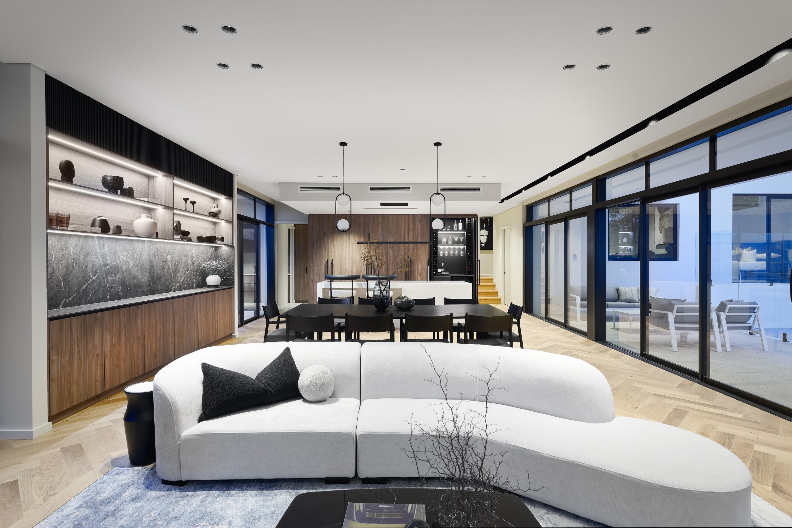 Viewway is a bespoke Nedlands residence where architectural excellence meets effortless liveability. Thoughtfully designed to embrace the connection between indoors and out, the home offers a series of light-filled living spaces flowing to a tranquil pool and courtyard. Generous bedrooms, including two master suites, provide privacy and comfort for all generations, while layered façades and timeless finishes create a refined street presence. At its heart lies an entertainer’s kitchen and expansive alfresco, seamlessly blending everyday family life with sophisticated spaces for gathering and celebration.